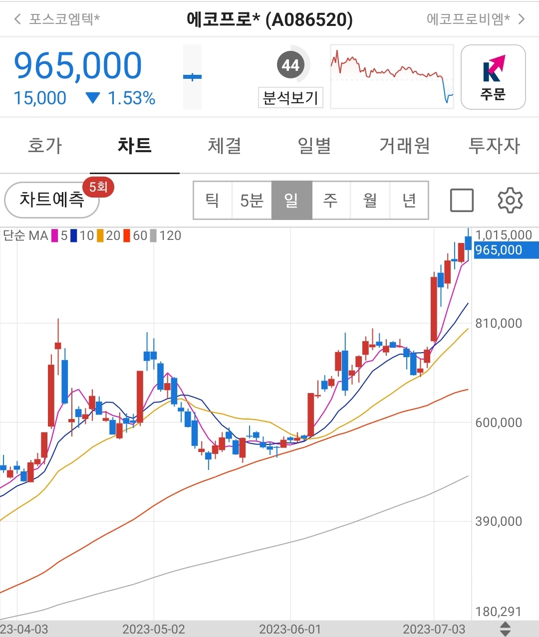 에코프로 주가 차트