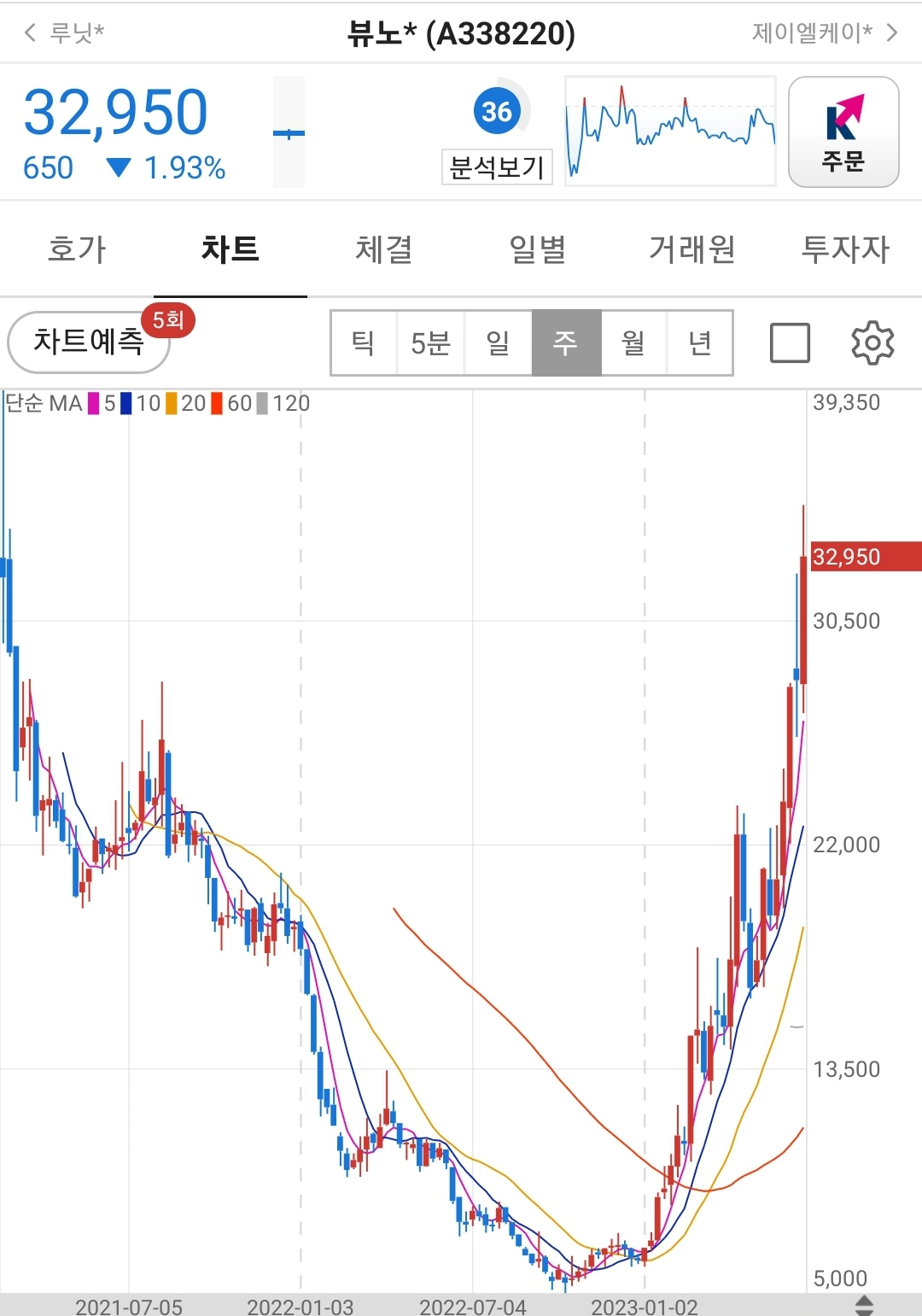 다만, 대장주인 루닛의 급등락에 따라 동반 상승, 하락할 수 있기 때문에 뷰노 종목 진입시는 루닛의 주가를 동시에 놓고 진입시점, 매도시점을 고려해야 합니다.