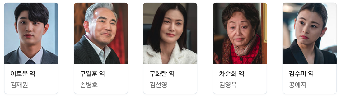 그외 오평화역의 고원희, 강다을역의 김가은, 노상식역의 안세하, 이로운역의 김재원, 구일훈역의 손병호, 구화란역의 김선영, 차순희역의 김영옥, 김수미역의 공예지, 전민서역의 김정민, 하나 역의 최지현, 두리 역의 김채윤, 세호 역의 이호석, 도라희 역의 이지혜 배우들이