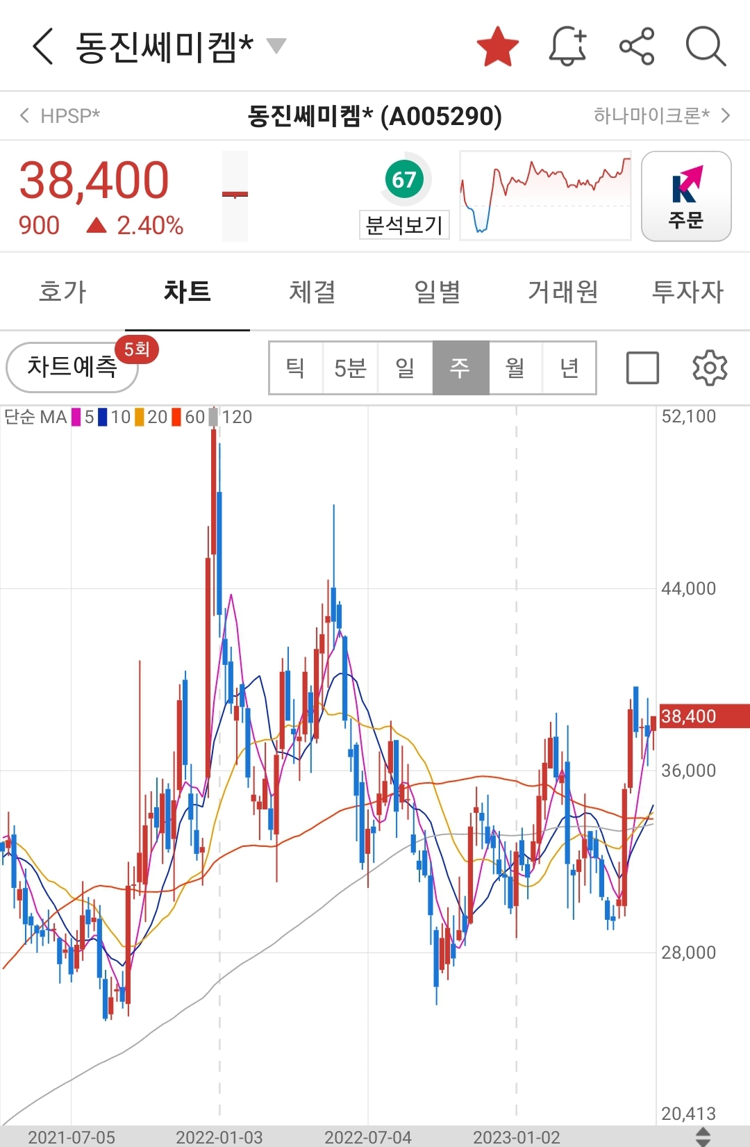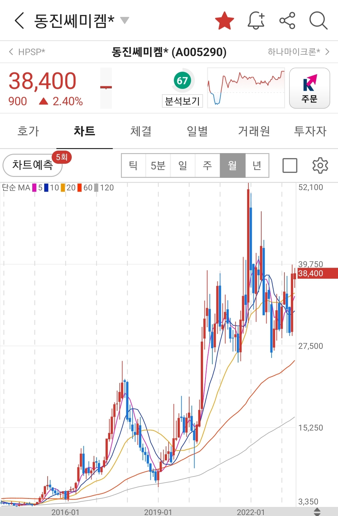 포스팅하는 오늘 6월 20일(화) 종가는 +0.39% 상승한 38,550원으로 마감했습니다.