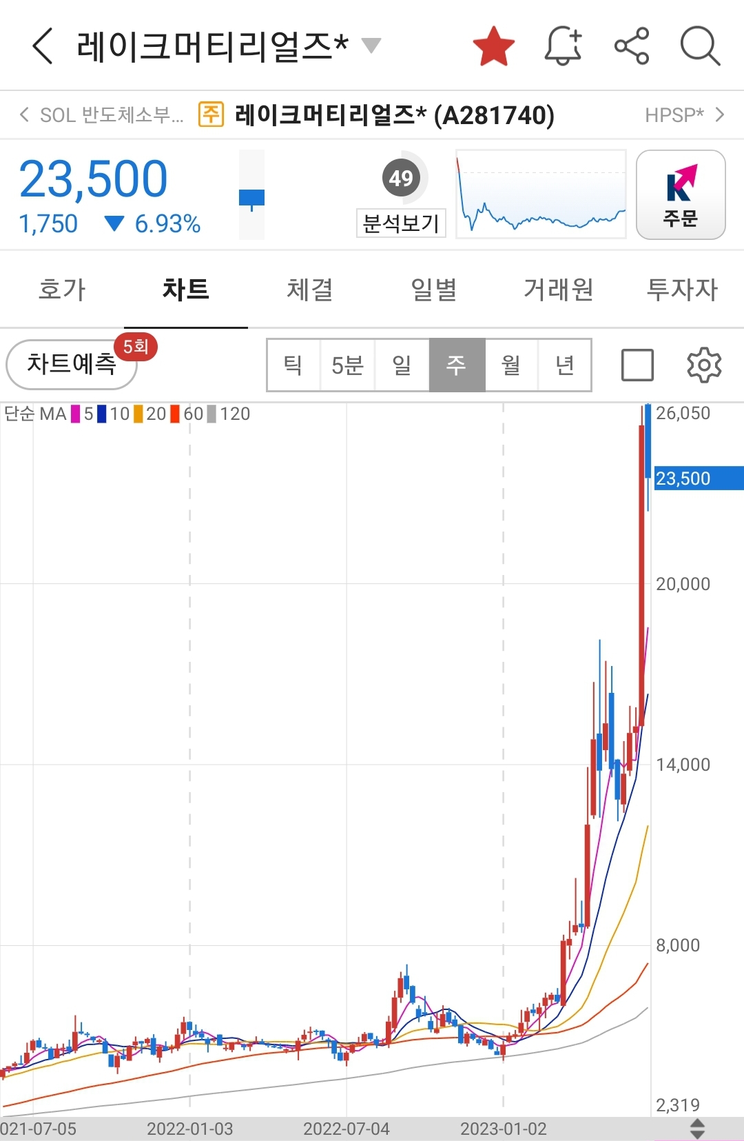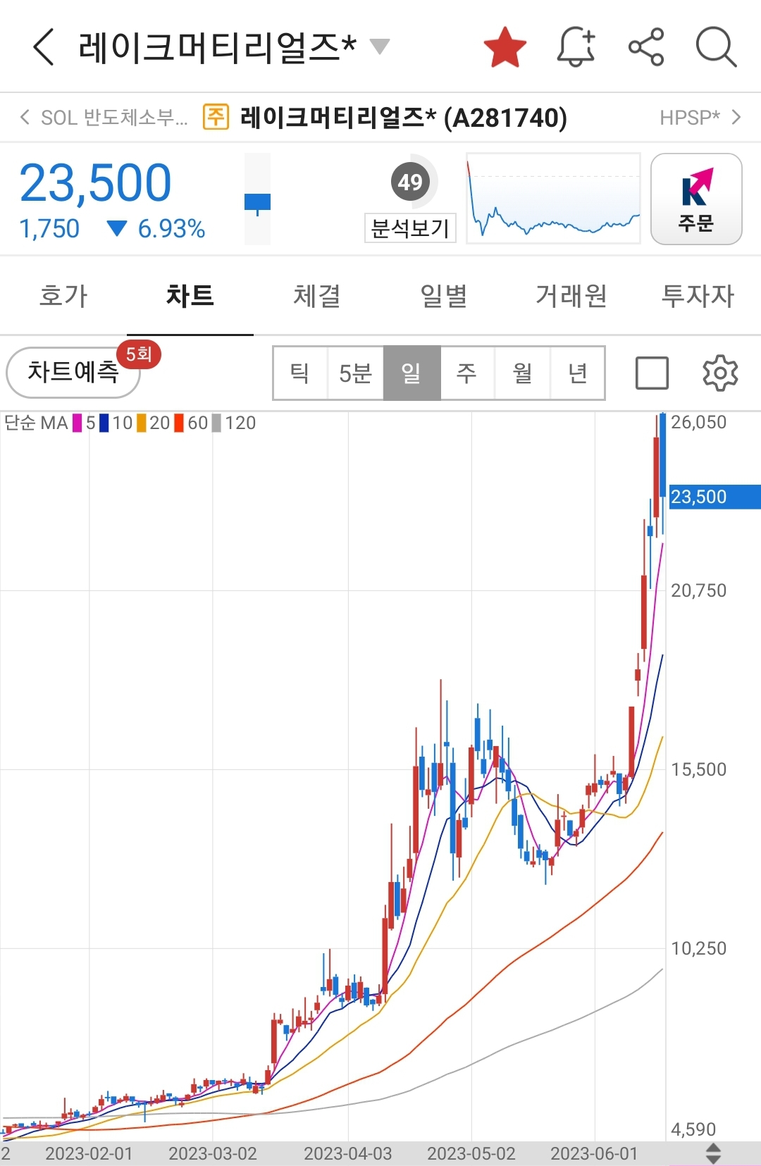 6월 12일 편입 발표가 난 날의 종가는 -3.65% 하락한 27,750원으로 마감되었습니다. 레이크머티리얼즈와 달리 편입 발표가 나면서 오히려 주간는 하락했습니다.
