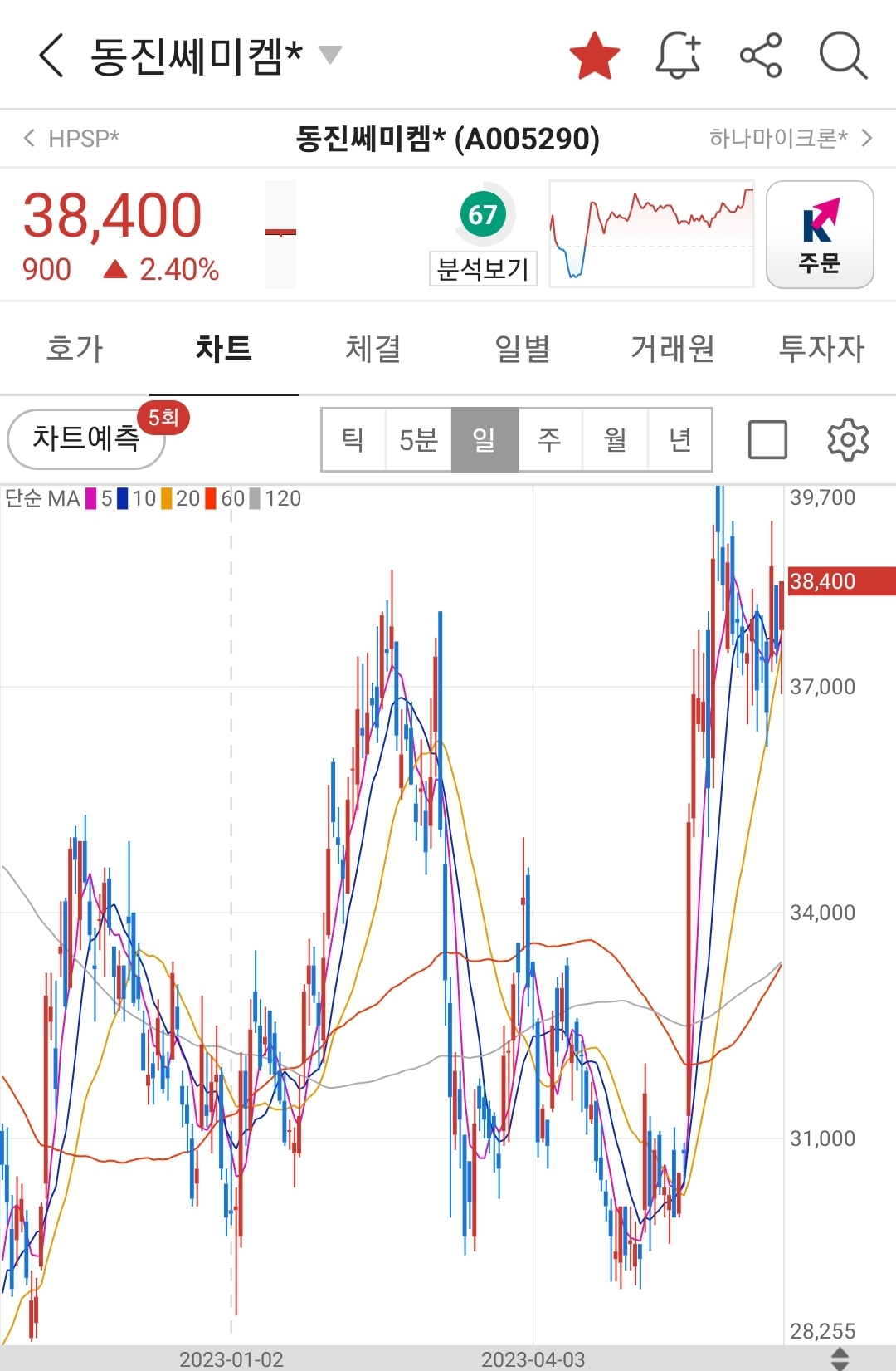 포스팅하는 오늘 6월 20일(화) 종가는 +0.39% 상승한 38,550원으로 마감했습니다.