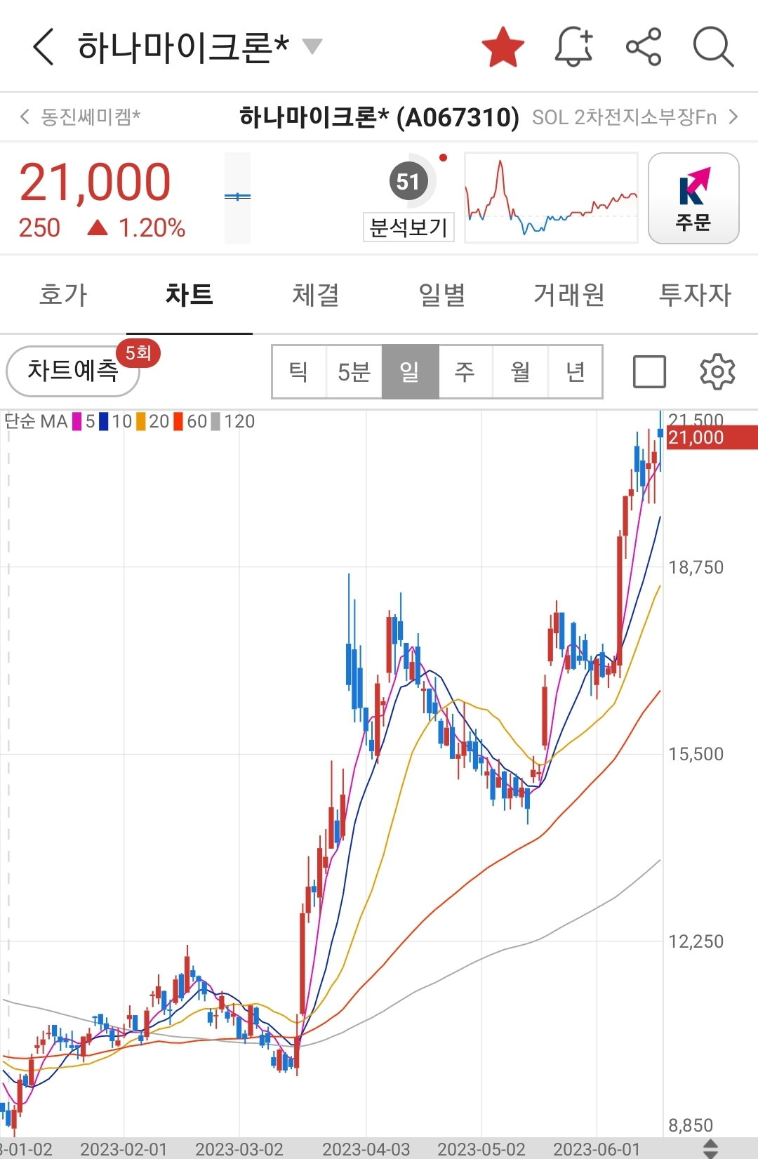 6월 20일(화) 장마감 종가는 +0.95% 상승한 21,200원입니다.